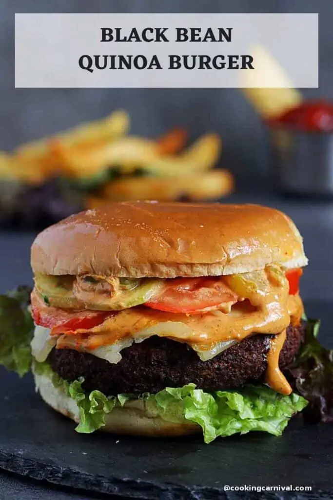 - Cover it with another half of the bun. Your Black bean Quinoa Burger is ready. Enjoy!