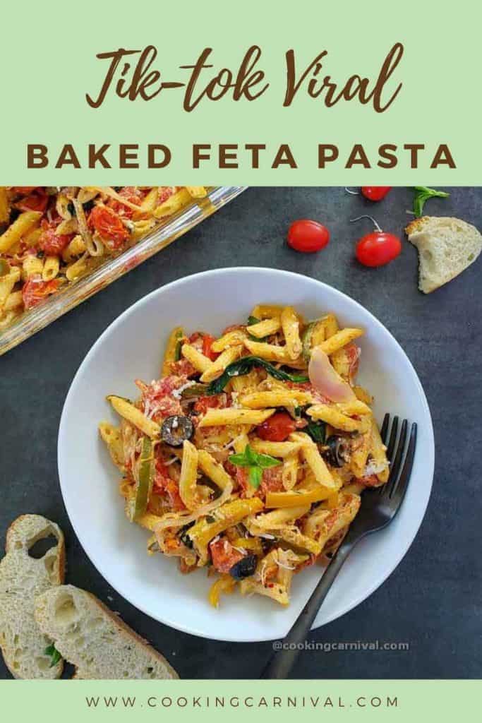 The new TikTok trending baked feta pasta recipe that everyone is talking about! It has loads of flavors, creamy comfort, lots of veggies, and carbs!