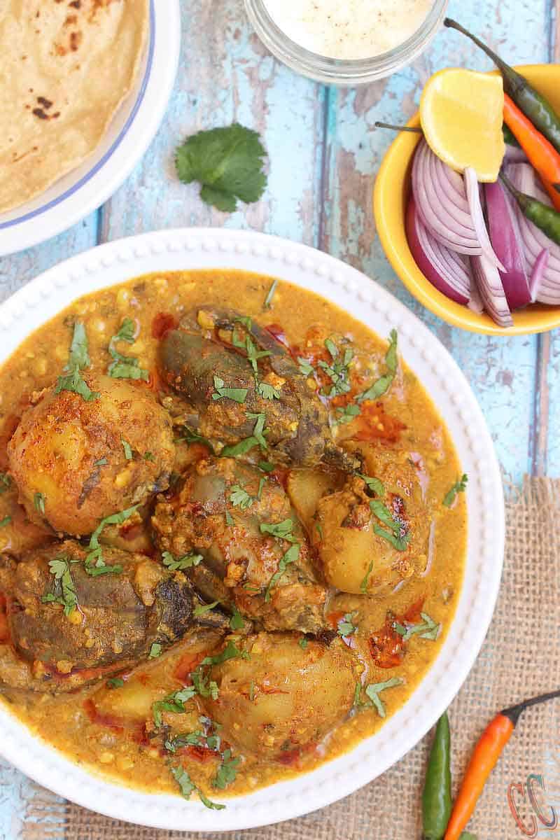 Bharwa Aloo Baingan | V+GF Stuffed eggplant potato curry (instant Pot)