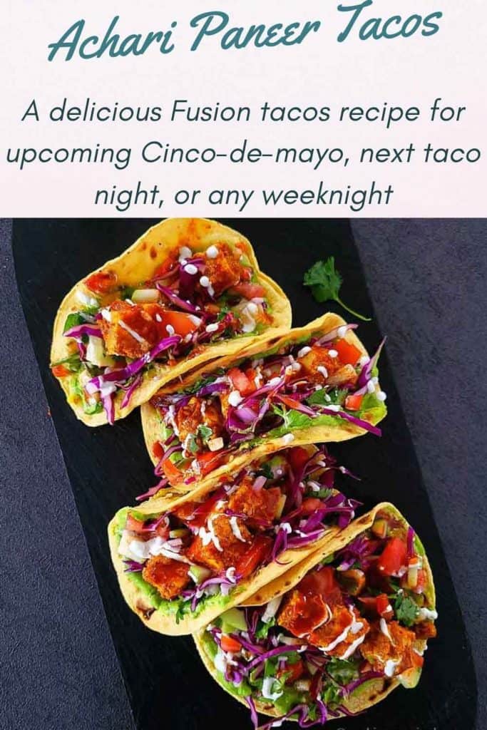 If you’re looking for a fun and delicious way to add some excitement to the upcoming Cinco-de-mayo, next taco night, or any weeknight, try my Fusion Achari Paneer Tacos. The flavor combinations will keep you and your family members coming back for more!