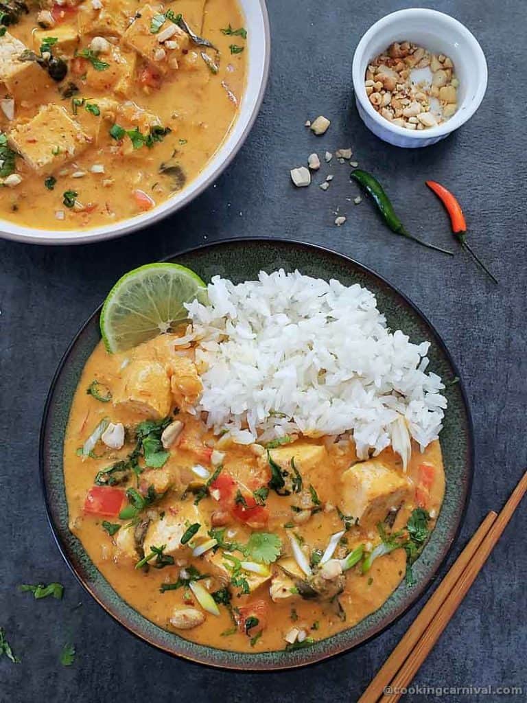 Yes! This recipe freezes very well. As I am all for meal prepping to make your life easier, I suggest making a few extra servings of this tasty Thai peanut curry Make sure to cool it completely before transferring it to freezer-safe containers. The only thing to take care of when freezing always froze in the single portion size you are going to use so that you don’t end up thawing the whole quantity. Just be aware that your frozen tofu may get a little spongy in the freezer.What to serve with this curry?