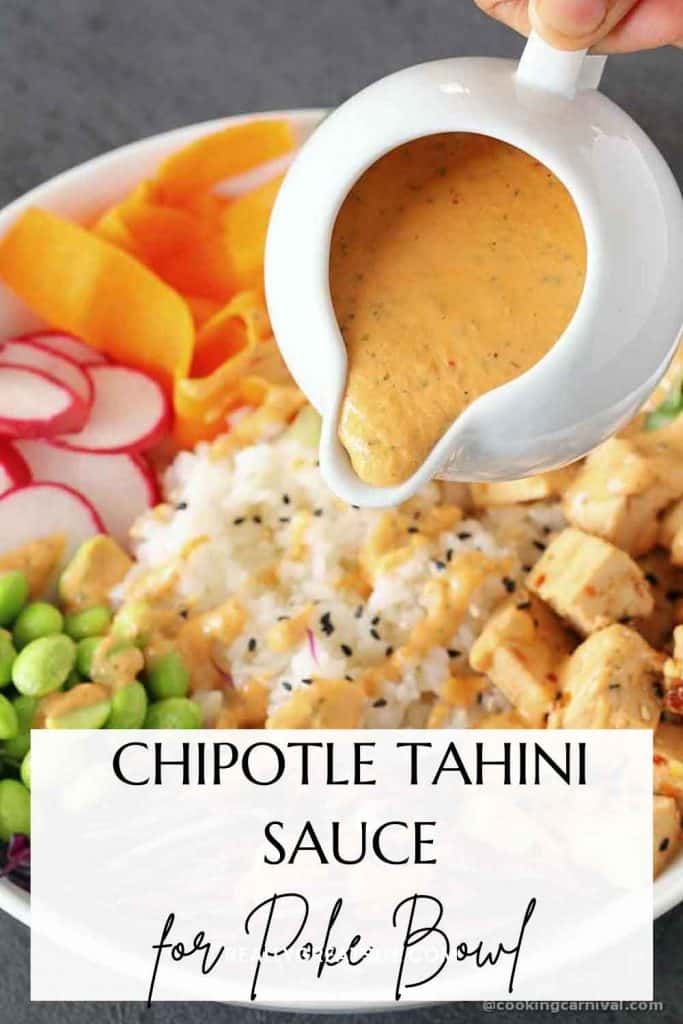 Traditional poke bowls are served with salty shoyu sauce. However, I love to serve this vegan poke bowl with chipotle tahini sauce.