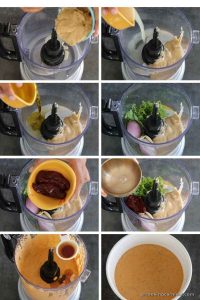 - Take all the sauce ingredients in a blender or food processer. Blend it well and make a smooth sauce. Keep it aside.