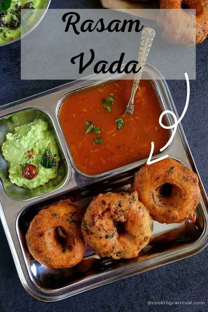 The combo of Rasam vada with coconut chutney is very famous and tastes awesome. You can enjoy them with sambar too.