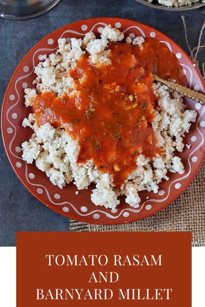 Switch off the flame, stir the rasam and serve with barnyard millet (or rice).