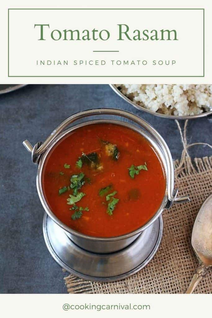 This tomato rasam is my friend Priya’s recipe. She is from the South and I have tried her Rasam a couple of times at her home and it’s to die for.
