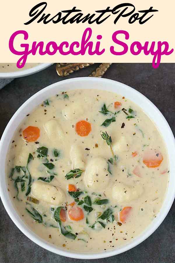 This Gnocchi Soup is made in Instant Pot and is the coziest way to warm up this season! It is filled with Potato dumplings called gnocchi, and veggies all in a creamy, flavorful and comforting soup!