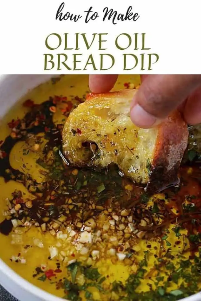 You can serve olive oil dip with any crusty bread and also it’s a great addition to a cheese board or charcuterie platter.