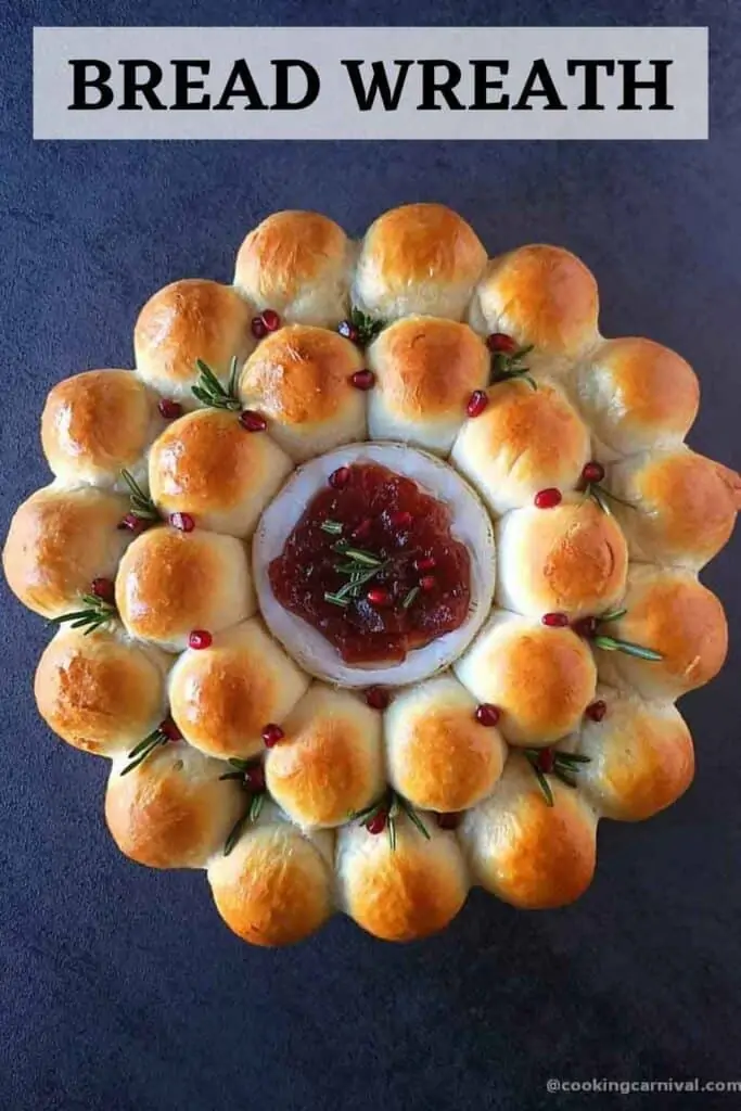 So here I am presenting a Bread wreath with baked brie cheese.