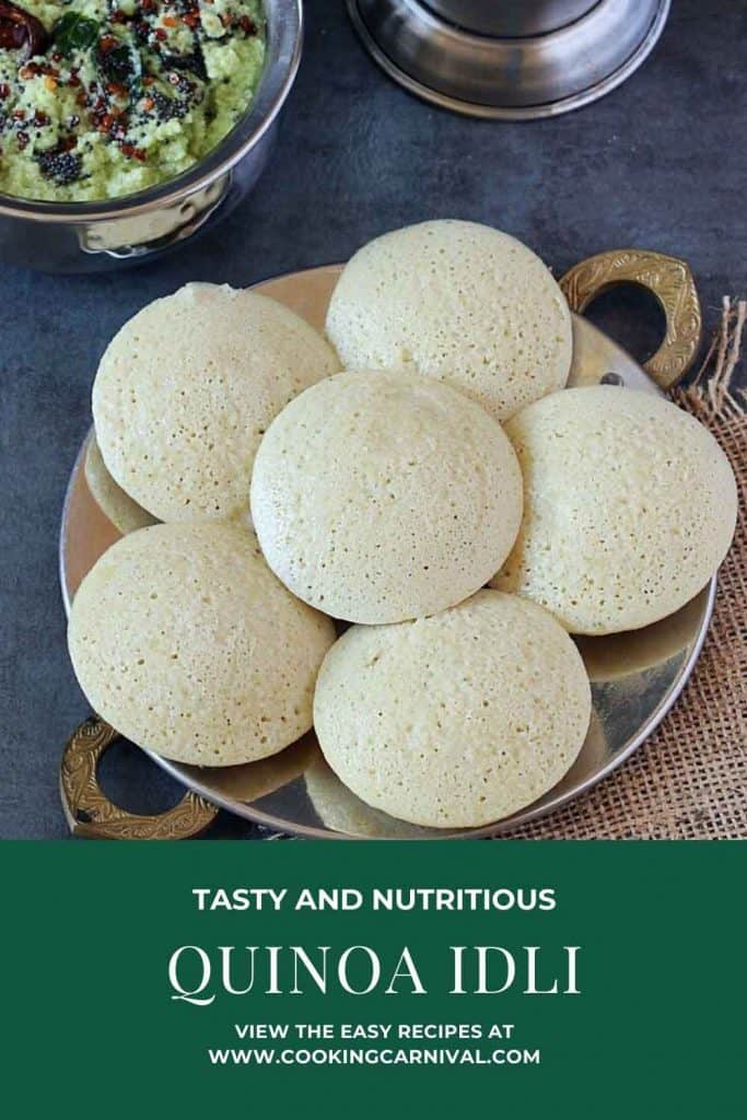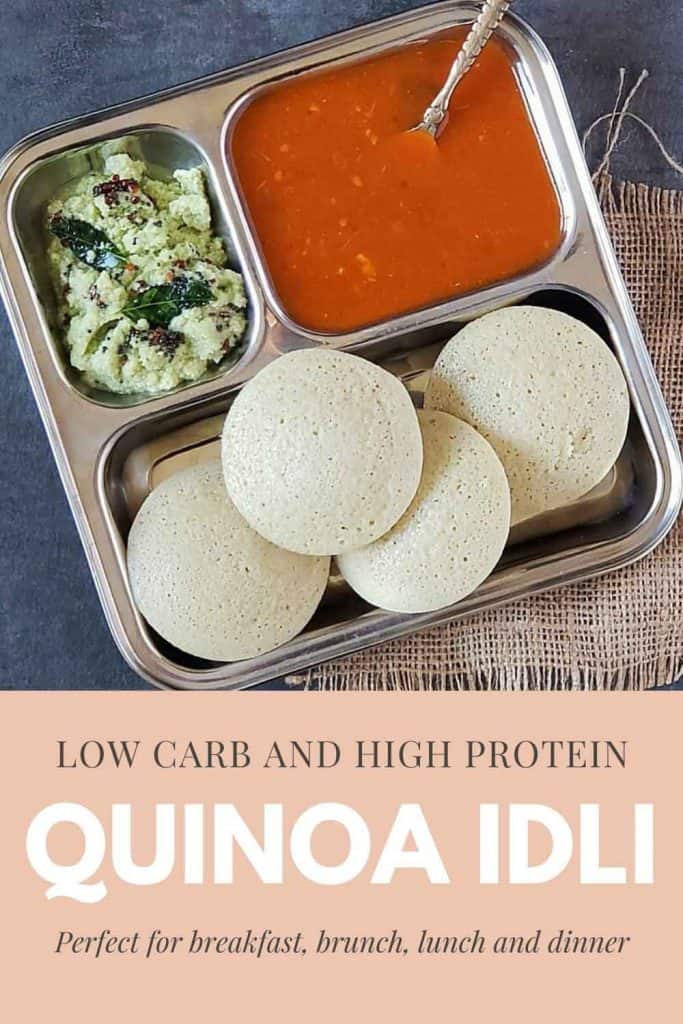 Serve quinoa idli hot with coconut chutney and sambar or rasam.