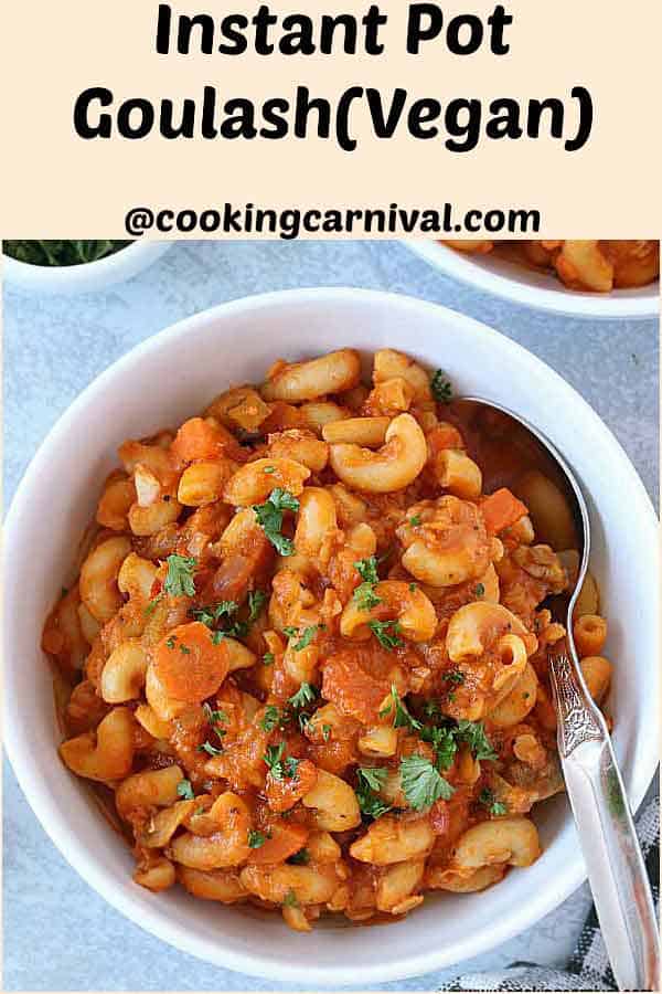 Perfect for a busy weeknight meal, this Instant Pot Goulash is one-pot, delicious, hearty, Vegan and its perfect recipe to satisfy the whole family! It gets ready under 20 minutes which is faster and better than the take out option!