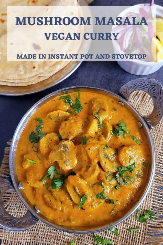 Restaurant style Mushroom Masala recipe (instant pot and stovetop)