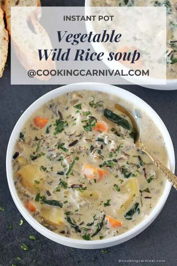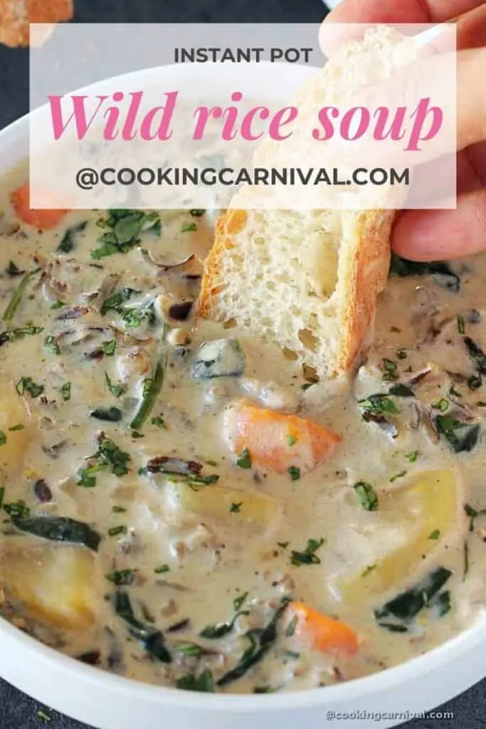 - Your Instant pot wild rice soup is already. Serve it hot with crusty bread, or focaccia bread, and a good salad. Enjoy!