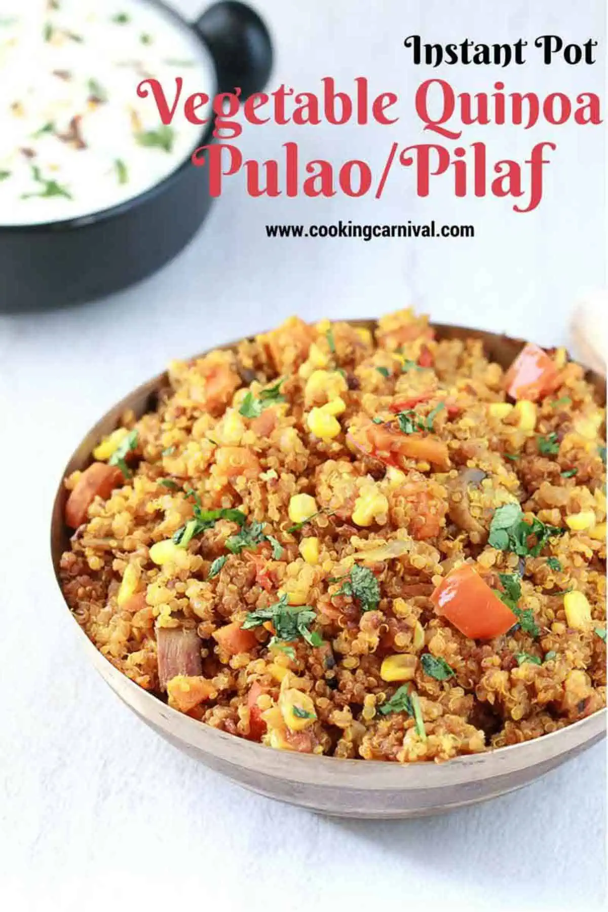 - Vegetable Quinoa Pulao is ready. Serve hot with Cucumber Raita or boondi raita, papad, and pickle. Enjoy!