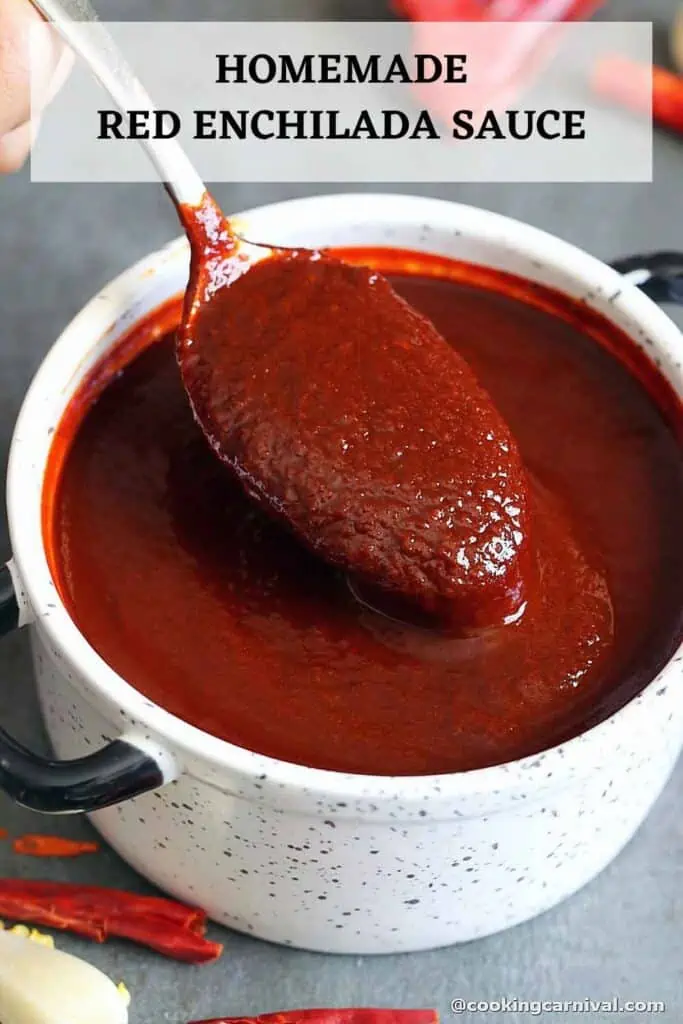 This sauce may also be called salsa roja, salsa roja para enchiladas or mole rojo.