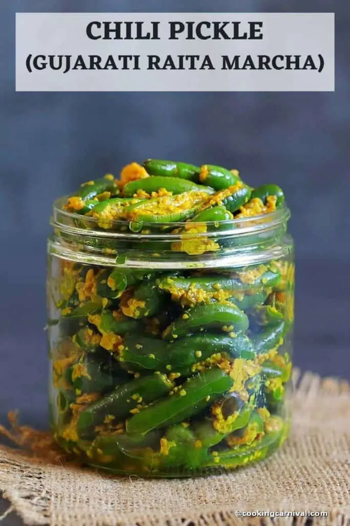 - After making this green chilli pickle, let it sit for 3-4 days before eating it. Shake it once a day so that the oil coats all the chillis.