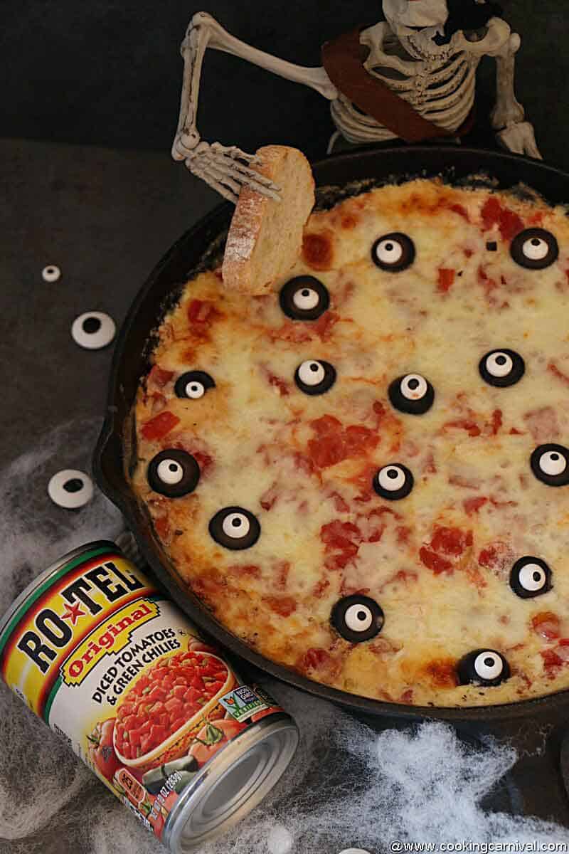 - Add Eyeballs candy after baking the dip.