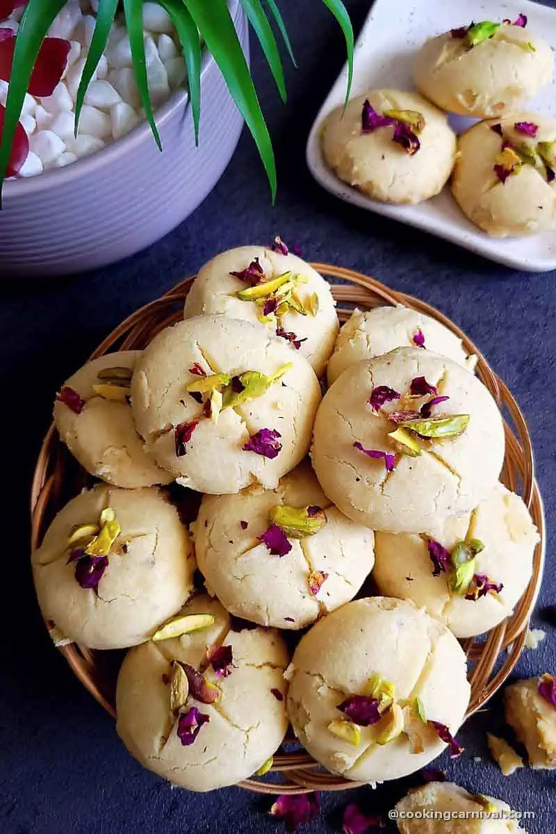 There are many different ways of making this recipe. Everyone has their way of making the nan khatai recipe. Some make it using all-purpose flour only, while others use a combination of flour and besan (chickpea flour).