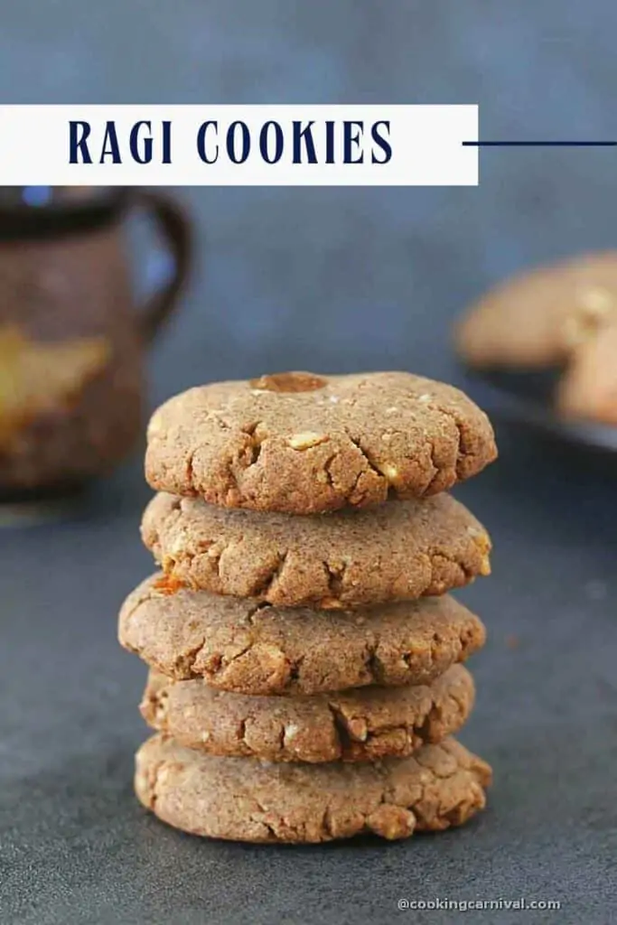 These Ragi cookies are flavored with cardamom, nuts, and sweetened with jaggery.
