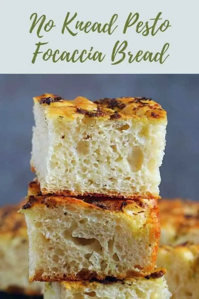 It yields a flavor-packed bread(thanks to our homemade Pesto sauce) with a crisp outer part and super fluffy tender, and slightly chewy crumb.