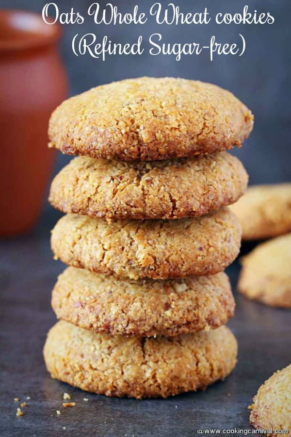 Eggless, refined sugar-free, Oats Atta Cookies, are my new favorite baked goodies. That too healthy! They are easy to make at home with basic pantry ingredients and don’t require baking soda and baking powder! They do make the perfectly delightful tea-time accompaniment.