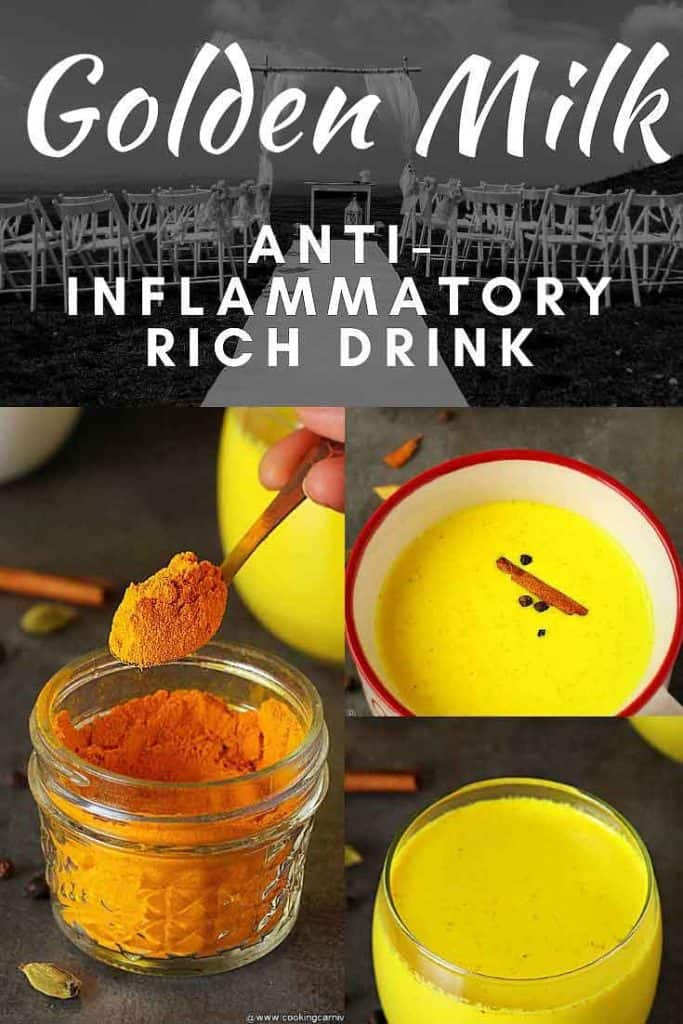 My Mom makes it with only 3 ingredients- milk, sugar, and turmeric. So she would stir milk and sugar with turmeric powder in a pot and bring it to a simmer. She doesn’t add any spices to it.