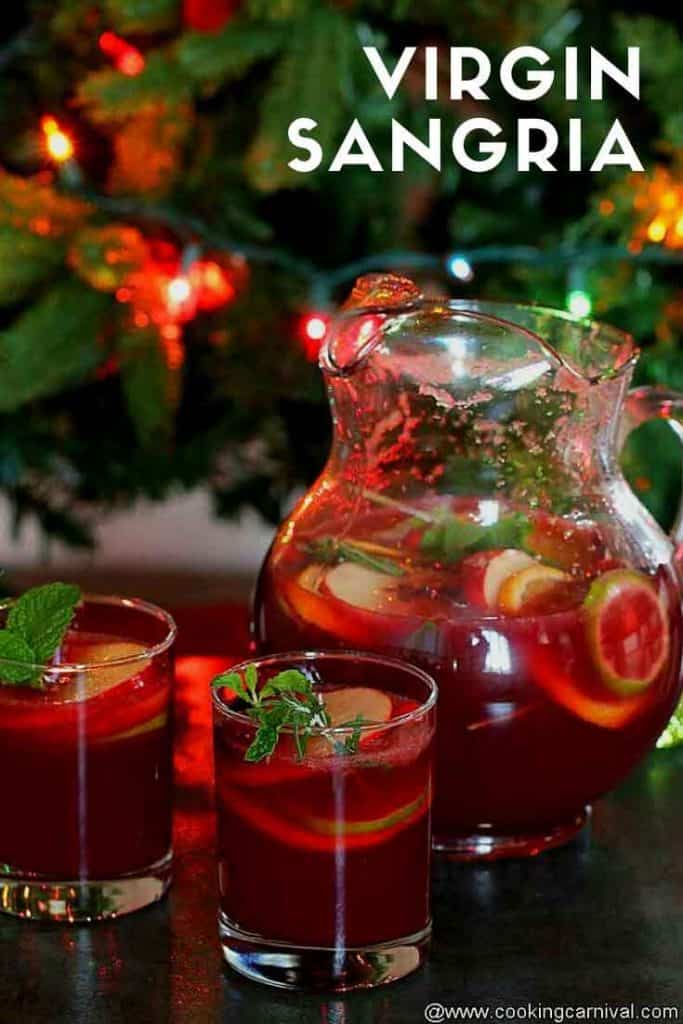 A fantastic drink for this festive season, this Non-alcoholic sangria is refreshing, fruity, so tasty, and looks pretty. This drink is a stunning centerpiece for any party, and yet it’s effortless to make. This will quickly become your family’s new favorite virgin drink!