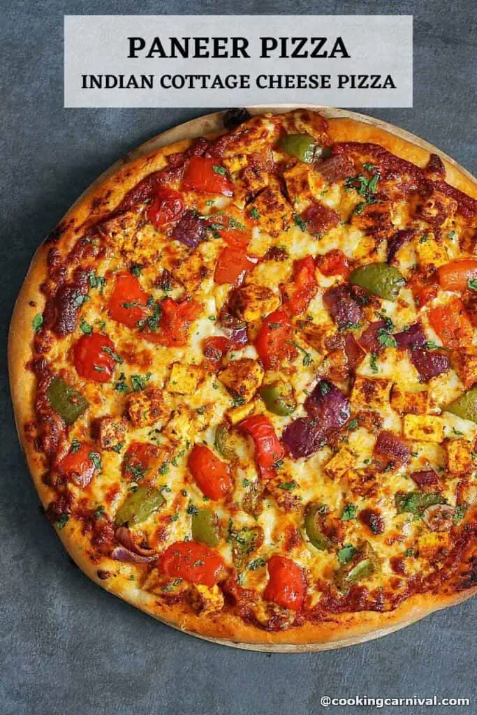 - Take it out from the oven and cut the Paneer Pizza into desired pieces. Enjoy hot.