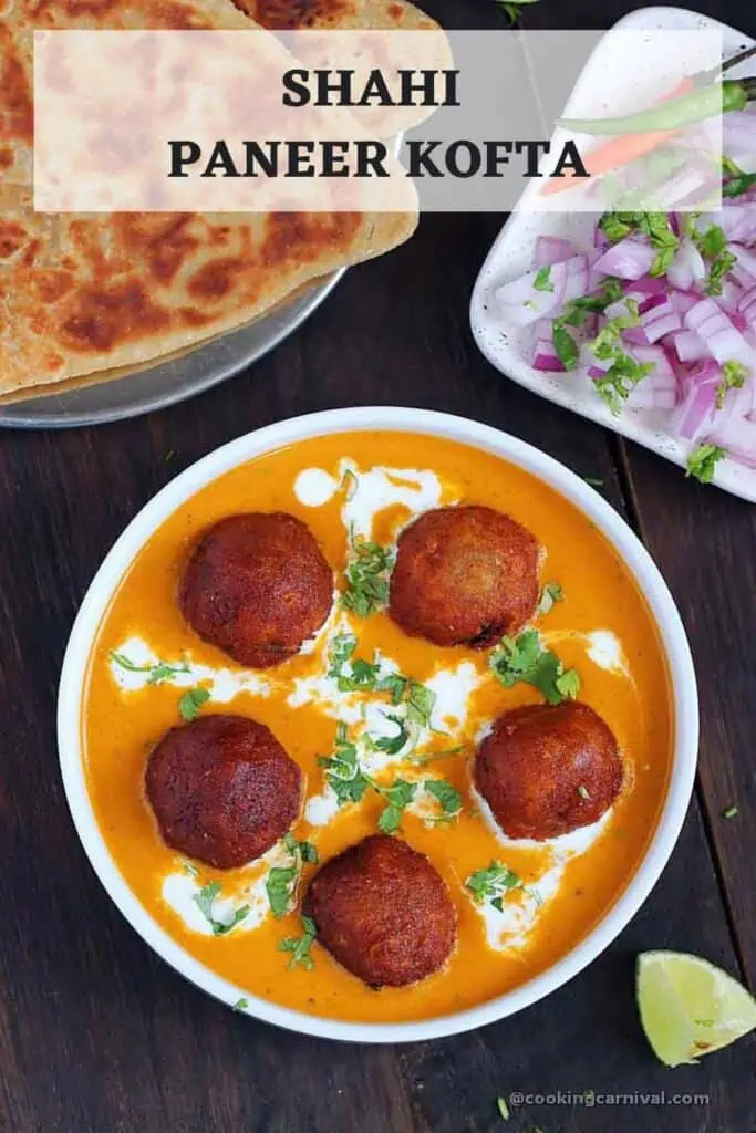 - Shahi Paneer Kofta is ready. Garnish it with cilantro and cream. Serve them with Naan, Paratha, Tandoori Roti, Kulcha, or jeera rice.