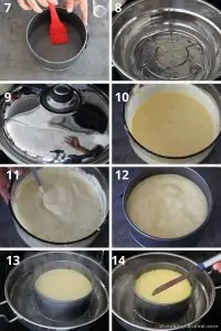 Meanwhile, grease your pan or thali with oil. I have taken a 6-inch diameter springform pan. Make sure your pan (container) is tall enough. (image 7)
