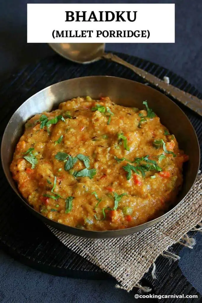 The millets are very filling so a bowl of Bhaidku would keep you full for a long time. This recipe is easy to chew and digest, making it ideal for seniors and small children.