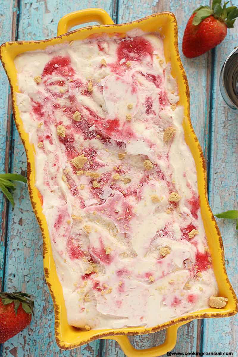 This recipe is easy adaptive and can be made with other fruit flavors too. Sub strawberry puree with any type of berries puree or even can take mixed berries puree. Or if you want to make plain cheesecake ice cream, skip the puree.