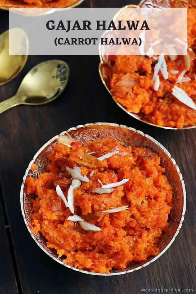 Carrots are called gajar in Hindi, and Halwa refers to Indian pudding, so Gajar halwa translates to “Carrot Pudding”.