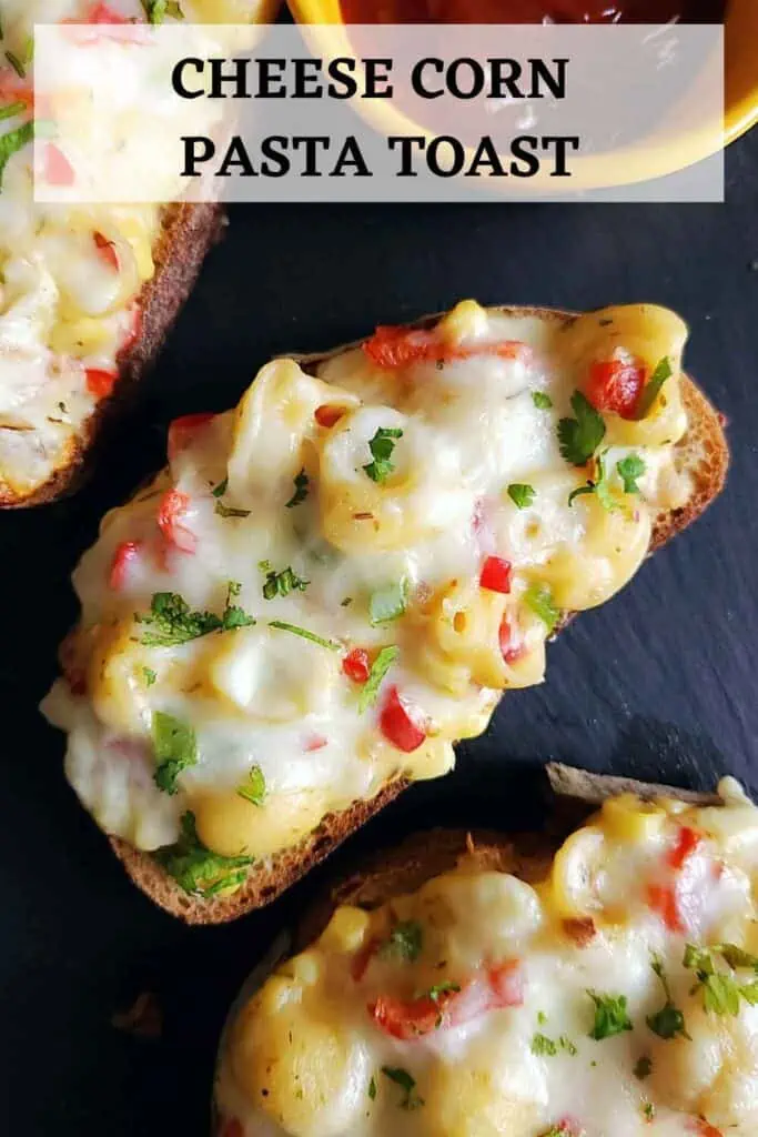 Make an easy cheese corn pasta open sandwich that will be everyone’s favorite!