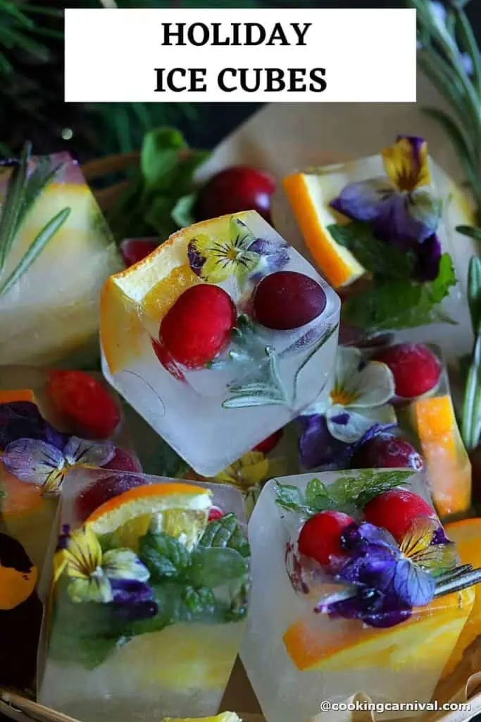 These Holiday Ice cubes will keep your favorite beverage cool, look amazing, and add some extra flavor.