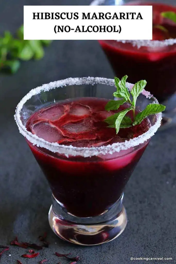 This hibiscus margarita is Virgin, tart, fruity, and slightly sweet, but not overwhelmingly so. The rich color and flowery flavor make it a fun party drink – perfect for at-home happy hours, Christmas party, Diwali, New Year’s Eve, Cinco de Mayo, or summer hosting.