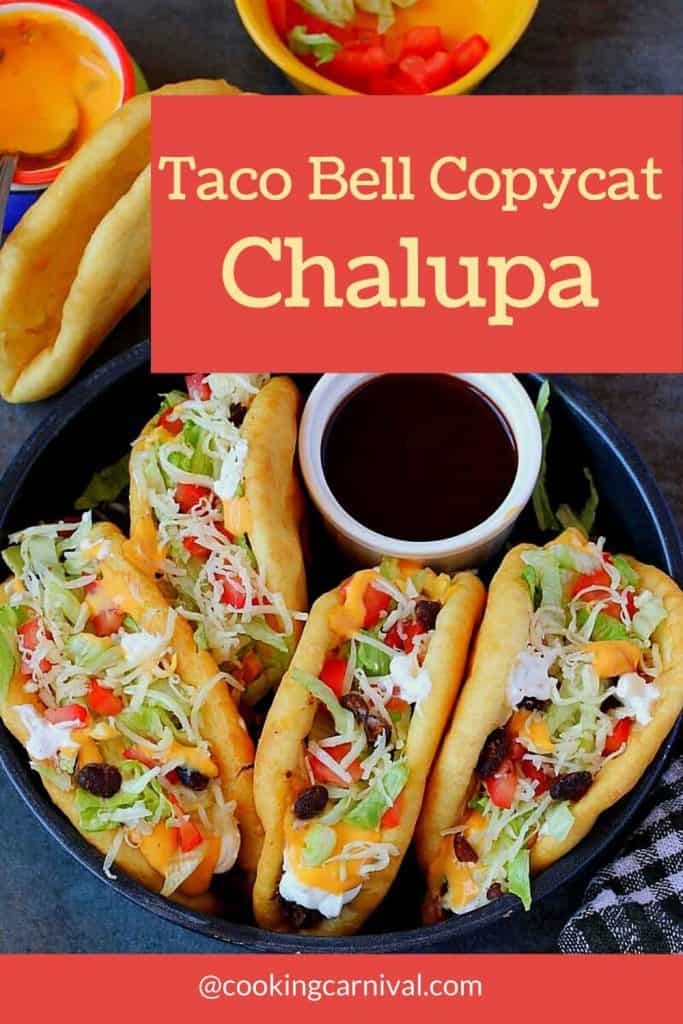- If you don’t have time to make the chalupa bread from scratch, you may use pita bread too. Take the pita bread, apply some oil or butter and fry it from one side, flip it, fold it like a taco shell, and cook it from both sides until golden in color.