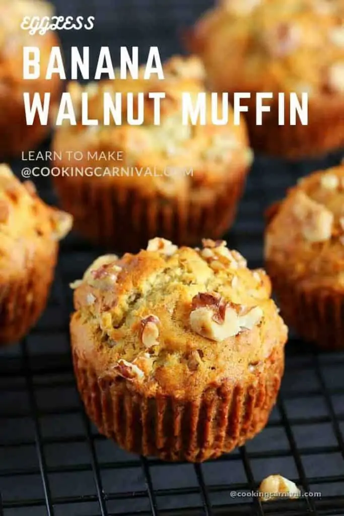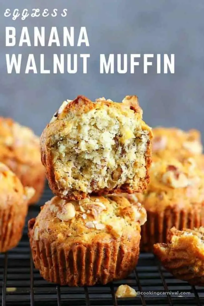 Soft, moist, and Eggless Banana Walnut Muffins! This easy and vegan muffin recipe comes together in minutes, and they bake up perfectly every time!