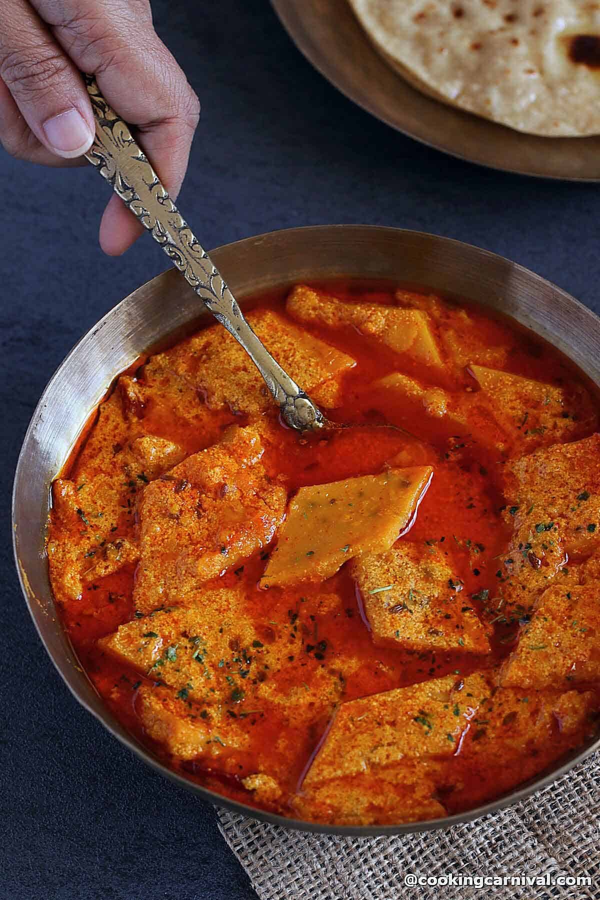 - Handle gram flour dumplings carefully, as they can fall apart quickly.